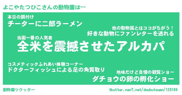 | 2回繰り返すあだ名 | 『よこよこ』『よよここ』『ぬれぬれ』 |