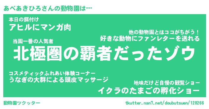 | 肩書あだ名 | 『あべあきひろ店長』『あべあきひろ班長』 |