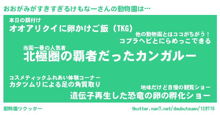| 欧米人風あだ名 | 『マイケルおおがみがすきすぎるけもなー』 |