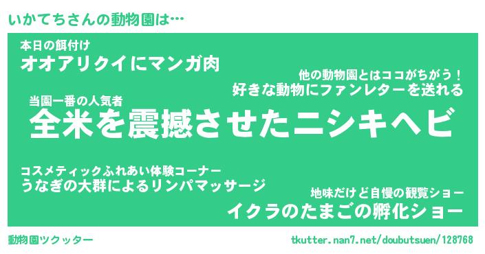 | 2回繰り返すあだ名 | 『いかいか』『いいかか』『おやおや』 |