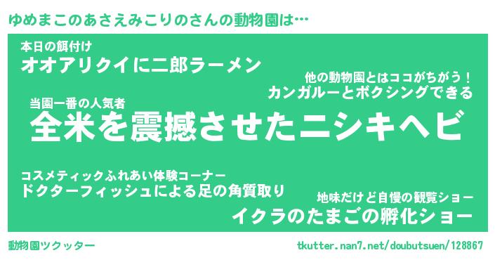 | ツイッター | ゆめまこのあさえみこりのさんのツイッターID『namakemono_star』 |