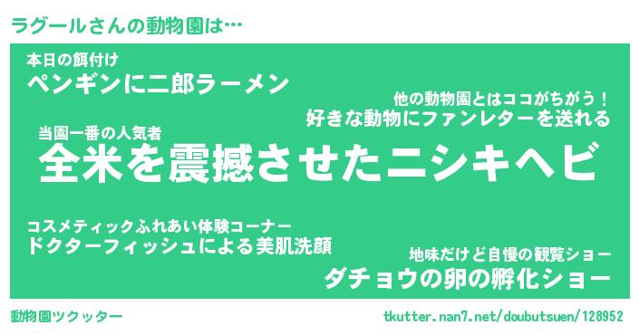 | ヘコむあだ名 | 『ラグにゅー』『つくし』『ラグお』 |