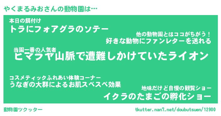 | 肩書あだ名 | 『やくまるみお社長』『やくまるみお班長』 |