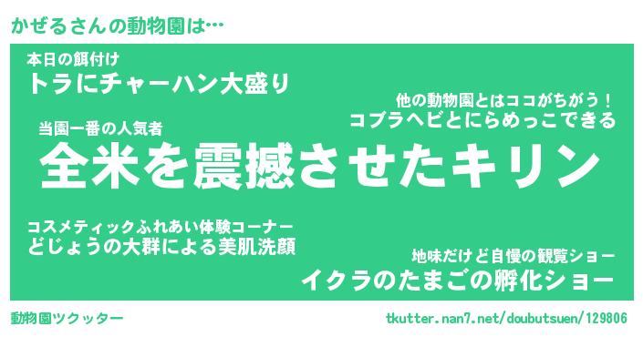 | 2回繰り返すあだ名 | 『かぜかぜ』『かかぜぜ』『おやおや』 |