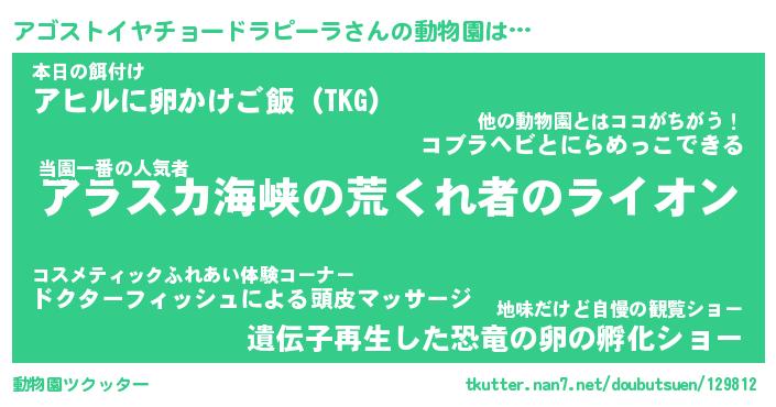 | 2回繰り返すあだ名 | 『アゴアゴ』『アアゴゴ』『ぬらぬら』 |