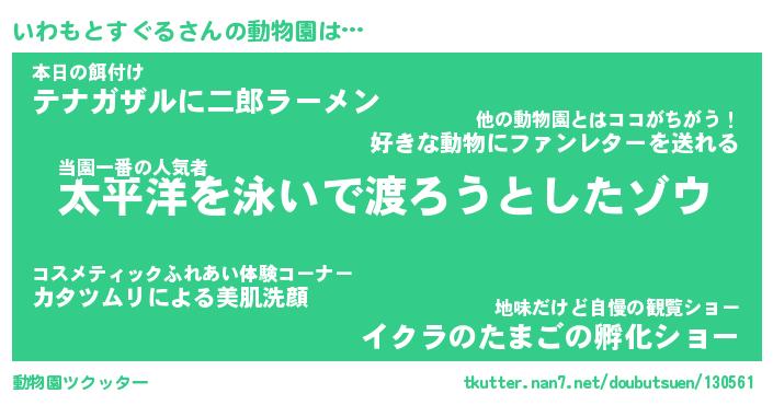 | 2回繰り返すあだ名 | 『いわいわ』『いいわわ』『ぬらぬら』 |