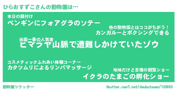 | 2回繰り返すあだ名 | 『ひらひら』『ひひらら』『いじいじ』 |