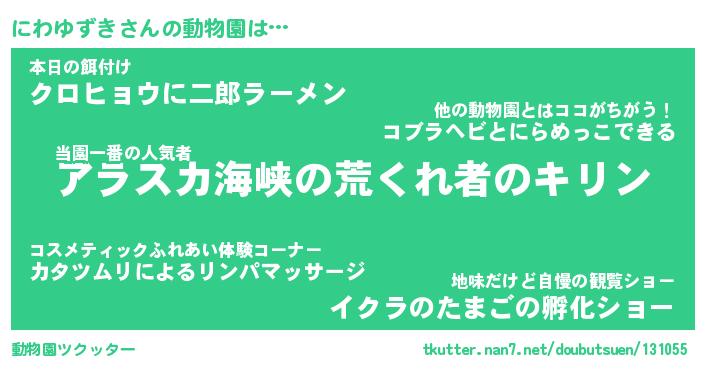 | 2回繰り返すあだ名 | 『にわにわ』『ににわわ』『いらいら』 |