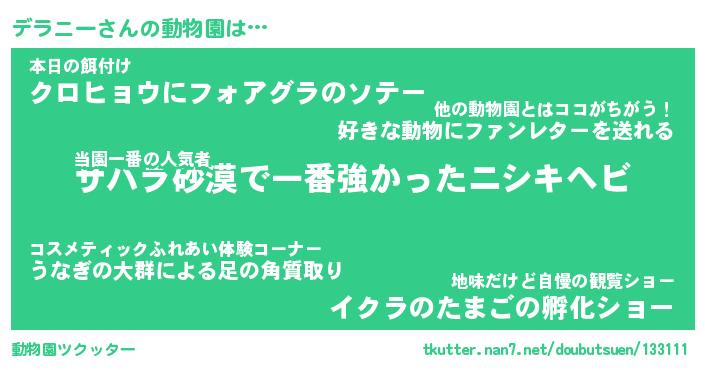 | 意味不明あだ名 | 『ペロリンデラニー』『永久保存デラニー』 |