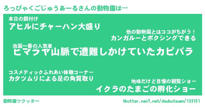 | 2回繰り返すあだ名 | 『ろっろっ』『ろろっっ』『ねばねば』 |