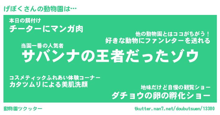 | 2回繰り返すあだ名 | 『げぼげぼ』『げげぼぼ』『なあなあ』 |