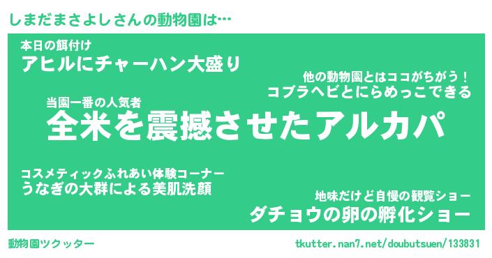 | 2回繰り返すあだ名 | 『しましま』『ししまま』『けらけら』 |