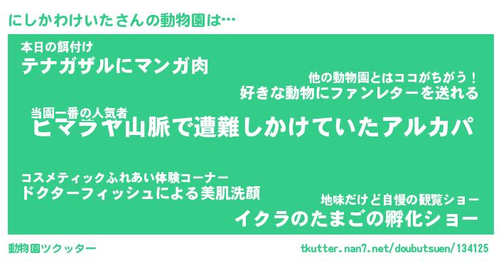 | 2回繰り返すあだ名 | 『にしにし』『ににしし』『ぬれぬれ』 |
