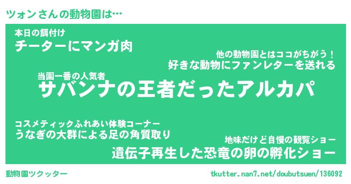 | 2回繰り返すあだ名 | 『ツォツォ』『ツツォォ』『のろのろ』 |