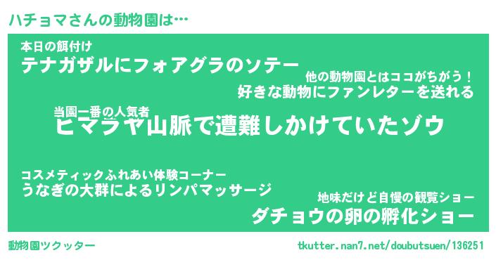 | 2回繰り返すあだ名 | 『ハチハチ』『ハハチチ』『ぬれぬれ』 |