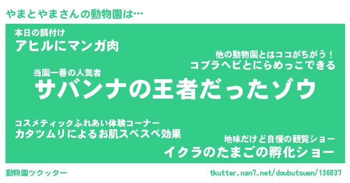 | 2回繰り返すあだ名 | 『やまやま』『ややまま』『うろうろ』 |