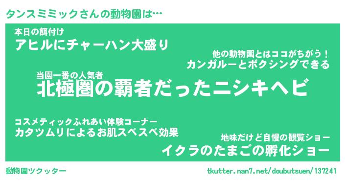 | 2回繰り返すあだ名 | 『タンタン』『タタンン』『うろうろ』 |