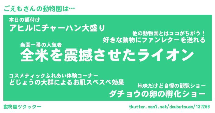 | 2回繰り返すあだ名 | 『ごえごえ』『ごごええ』『おろおろ』 |