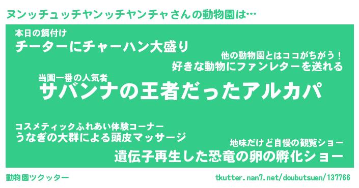| 病院 | ヌンッチュッチヤンッチヤンチャ院長の病院名『国立すぽぽぽ診療所』 |