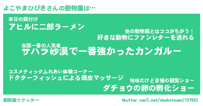 | 2回繰り返すあだ名 | 『よこよこ』『よよここ』『うずうず』 |