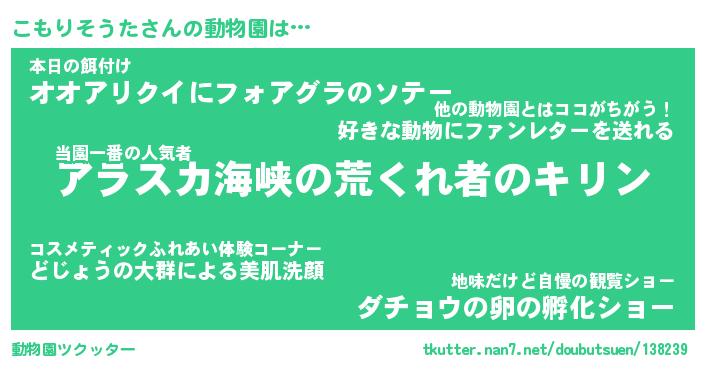 | 2回繰り返すあだ名 | 『こもこも』『ここもも』『あんあん』 |