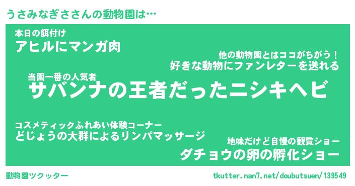 | 2回繰り返すあだ名 | 『うさうさ』『ううささ』『ねばねば』 |