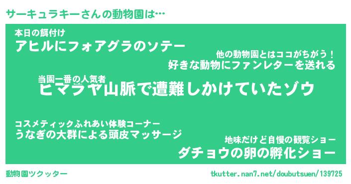 | 2回繰り返すあだ名 | 『サーサー』『ササーー』『うろうろ』 |