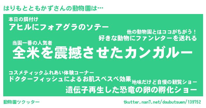 | ツイッター | はりもとともかずさんのツイッターID『namakemono_man』 |