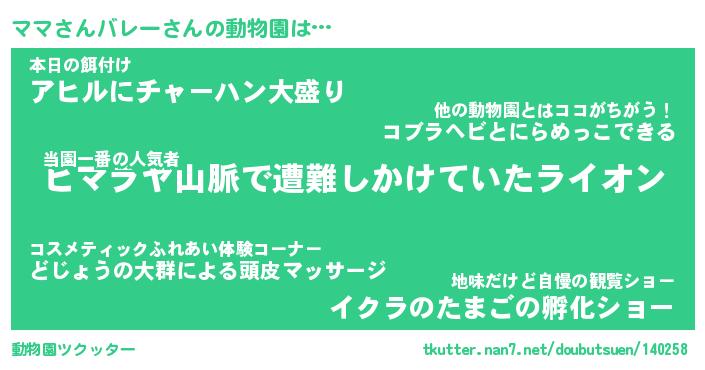 | 2回繰り返すあだ名 | 『ママママ』『ママママ』『げこげこ』 |