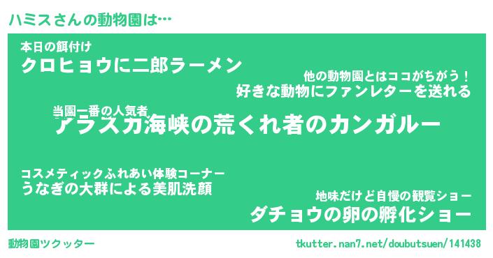| 2回繰り返すあだ名 | 『ハミハミ』『ハハミミ』『にたにた』 |