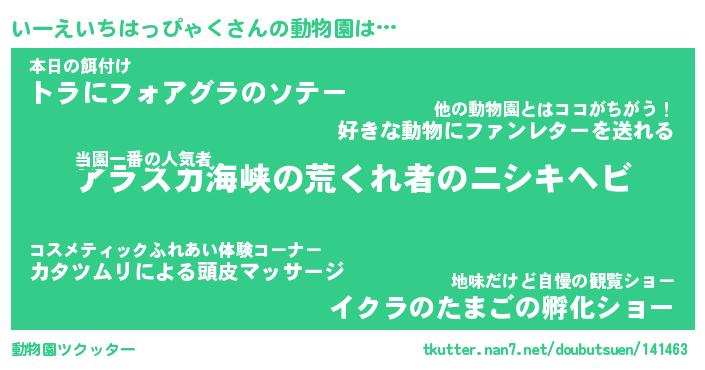 | 2回繰り返すあだ名 | 『いーいー』『いいーー』『がたがた』 |