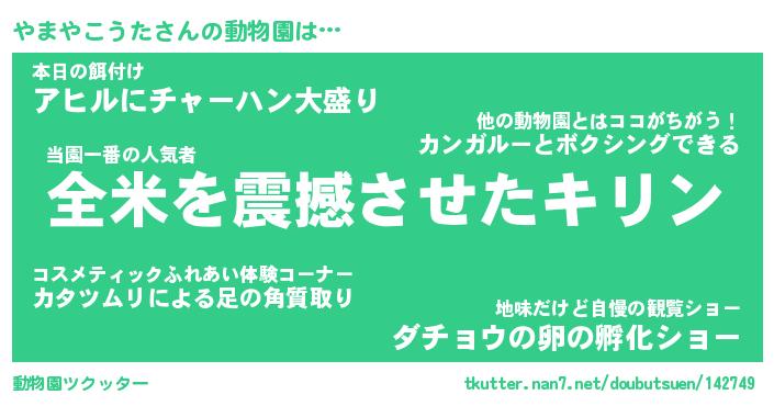 | 2回繰り返すあだ名 | 『やまやま』『ややまま』『がらがら』 |