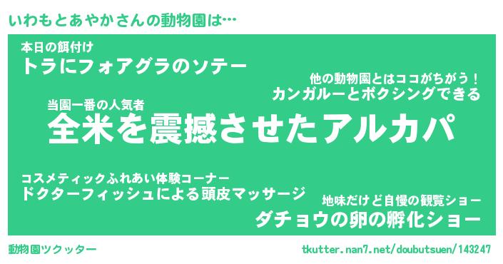 | 2回繰り返すあだ名 | 『いわいわ』『いいわわ』『おやおや』 |