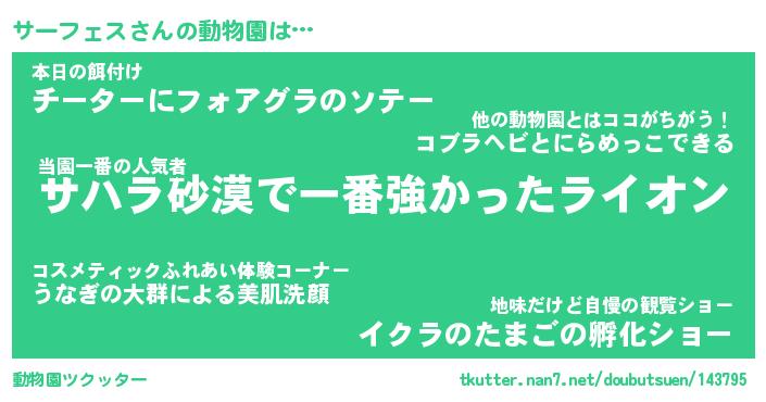 | ヘコむあだ名 | 『サーふぇ~』『酢こんぶ』 |