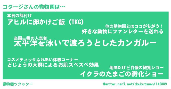 | 2回繰り返すあだ名 | 『コタコタ』『ココタタ』『いじいじ』 |