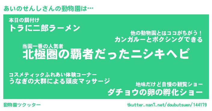 | 2回繰り返すあだ名 | 『あいあい』『ああいい』『ぬらぬら』 |