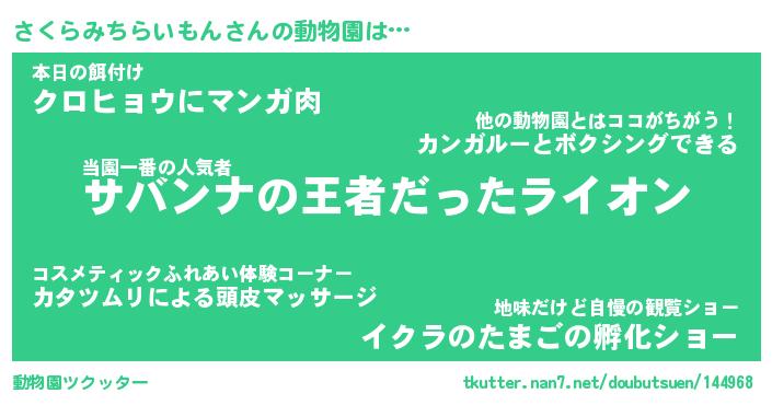| 胡散臭い通販商品みたいなあだ名 | 『必ず成功するブレスレット…その名も「さくらみちらいもん」』 |