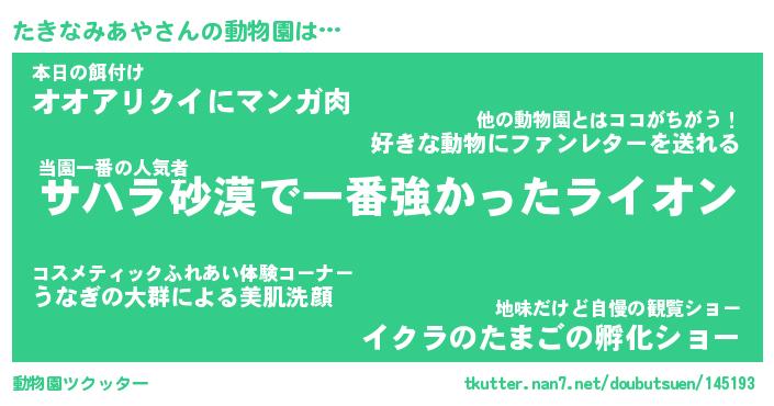 | 2回繰り返すあだ名 | 『たきたき』『たたきき』『うねうね』 |