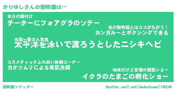 | ヘコむあだ名 | 『かりにゅー』『酢こんぶ』『かりを』 |