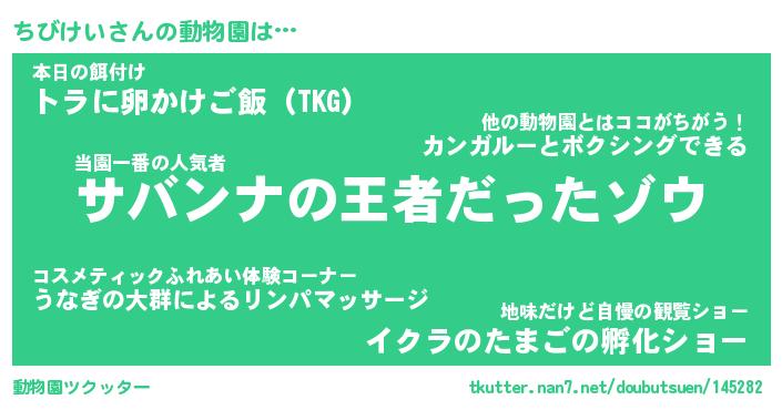| 2回繰り返すあだ名 | 『ちびちび』『ちちびび』『いらいら』 |