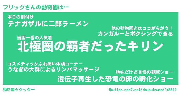 | 意味不明あだ名 | 『ペロリンフリック』『永久保存フリック』 |