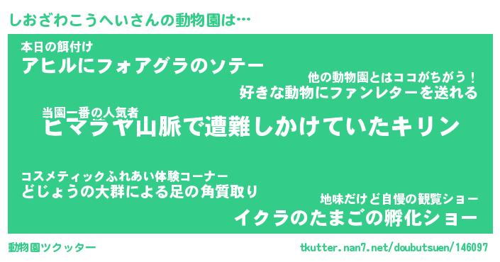 | ツイッター | しおざわこうへいさんのツイッターID『dendenmushi_kun』 |
