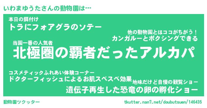 | 2回繰り返すあだ名 | 『いわいわ』『いいわわ』『あんあん』 |