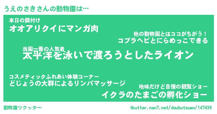 | 2回繰り返すあだ名 | 『うえうえ』『ううええ』『ぎざぎざ』 |