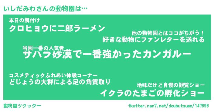 | 2回繰り返すあだ名 | 『いしいし』『いいしし』『ぷかぷか』 |