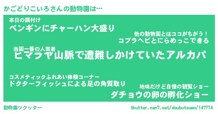 | 2回繰り返すあだ名 | 『かごかご』『かかごご』『ねちねち』 |