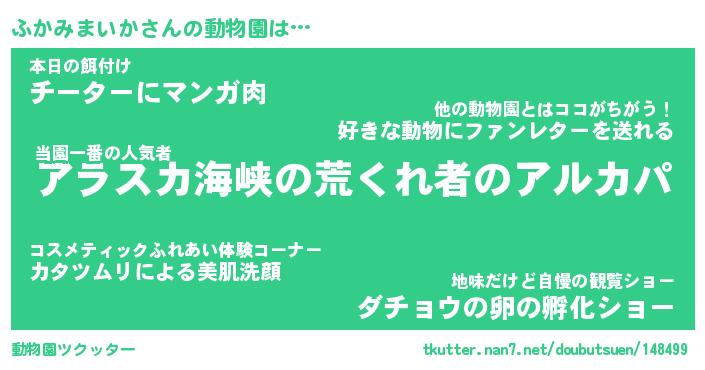 | 2回繰り返すあだ名 | 『ふかふか』『ふふかか』『うねうね』 |