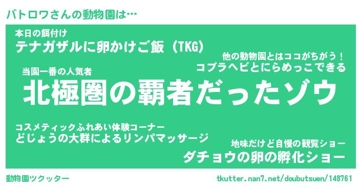 | 2回繰り返すあだ名 | 『バトバト』『ババトト』『くねくね』 |