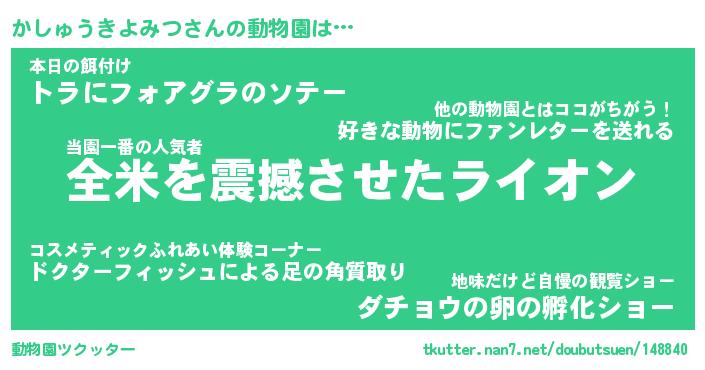 | ツイッター | かしゅうきよみつさんのツイッターID『namakemono_man』 |