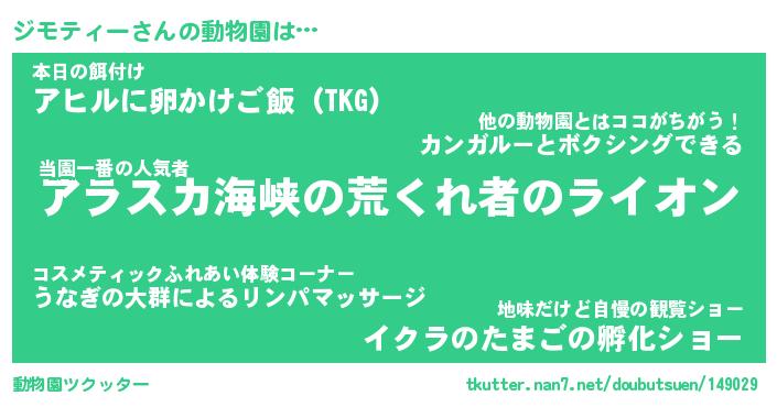 | 2回繰り返すあだ名 | 『ジモジモ』『ジジモモ』『うろうろ』 |